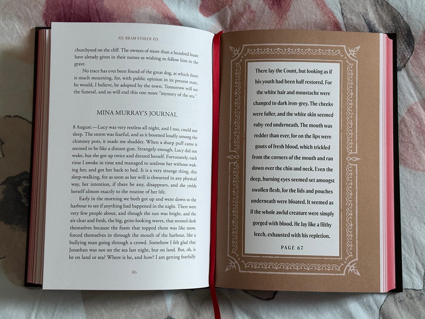 That said, the edition is beautiful. The font is big, which I always appreciate, making the edition reach a chunky 500 pages. I usually read whilst pacing around and so I was also building some biceps reading this one. There are beautifully decorated pull quotes dotted throughout the book that capture the atmosphere of the novel.